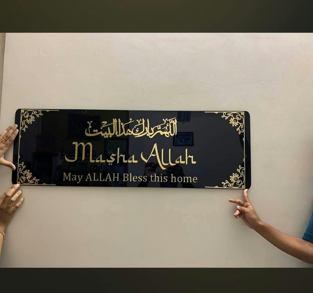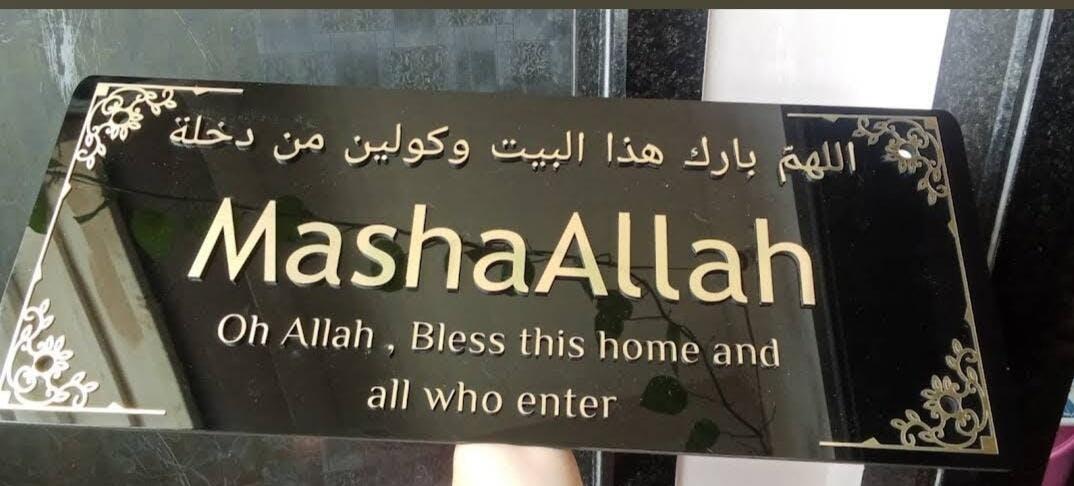 This elegant Framed MASHA ALLAH 3D Wall Art will add an affordable touch of sophistication to any home entrance. The intricate design features the phrase "May ALLAH BLESS THIS HOME DUA" and can be delivered all over India. Enhance your space with this unique and meaningful decor piece.
