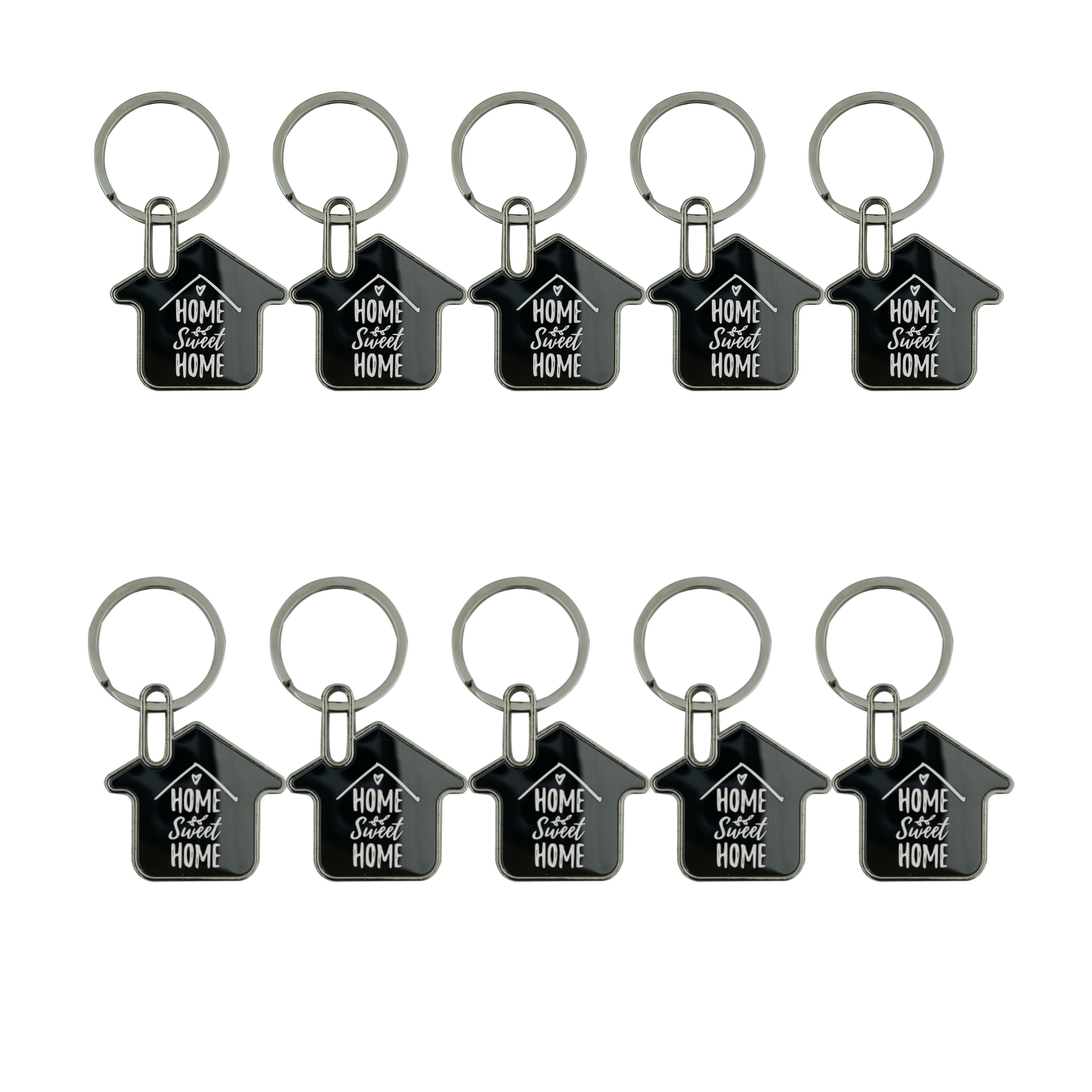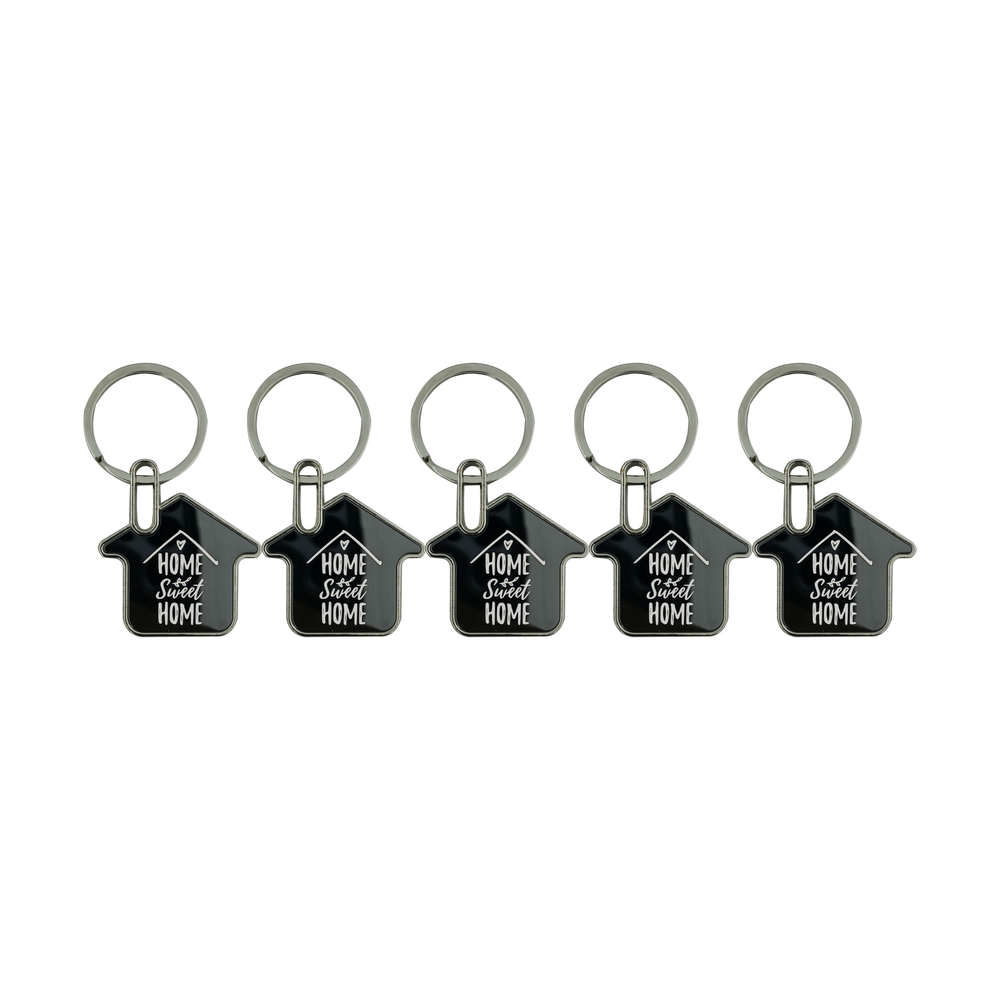 Add a touch of warmth to your keys with this elegant Home Sweet Home engraved keychain. Crafted from high-quality metal, this house-shaped keyring features a durable laser-engraved print that won’t fade over time.