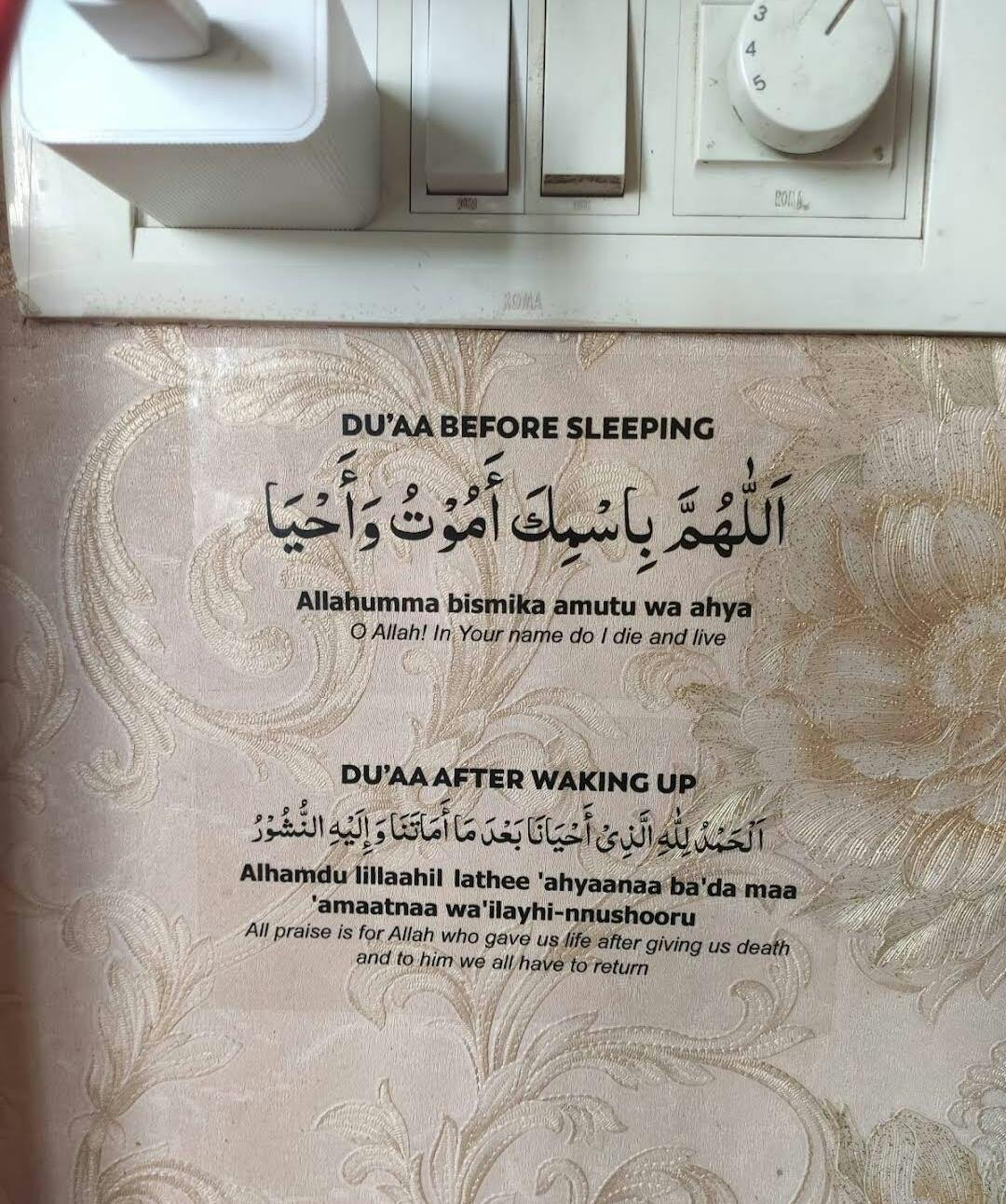 - Please make sure you DO NOT apply these stickers in areas of your homes where you will likely be pointing your legs towards. As this will be disrespecful towards the blessed dua writings on them.