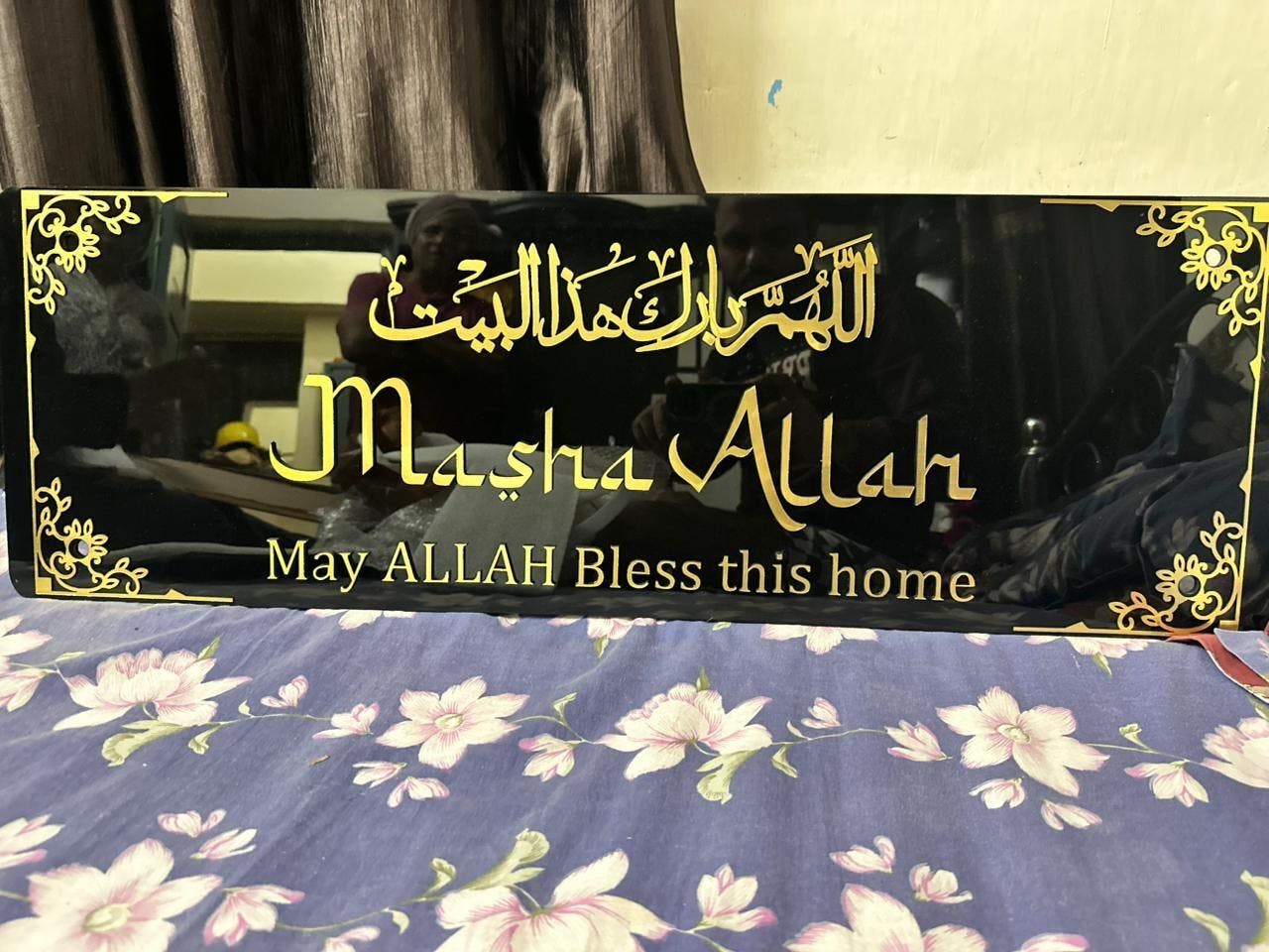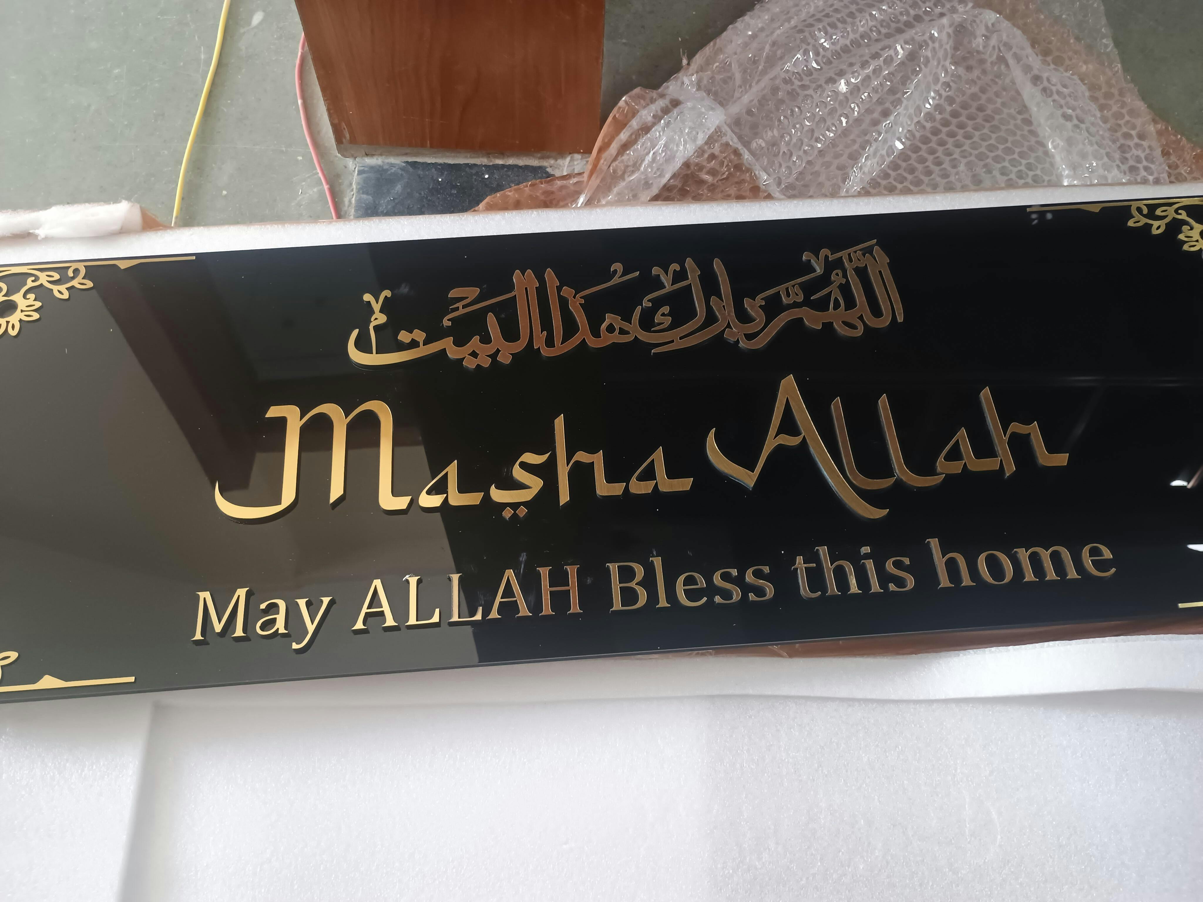 This elegant Framed MASHA ALLAH 3D Wall Art will add an affordable touch of sophistication to any home entrance. The intricate design features the phrase "May ALLAH BLESS THIS HOME DUA" and can be delivered all over India. Enhance your space with this unique and meaningful decor piece.